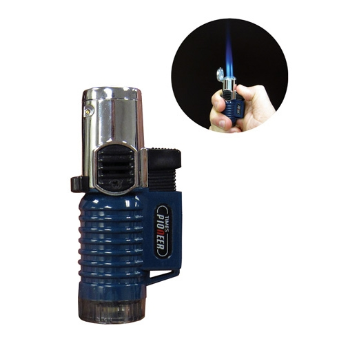 Triple flame torch cigar lighter. Lock for continuous flame. Wind resistant. Butane refillable. Adjustable flame height. Available in assorted colors