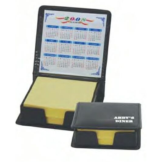 2 Year calendar. Leather like finish with attractive stitching. Blind debossing or color imprint included. 3"x3" sticky note pads included. 3 1/2" W x 3 5/8" L x 1" H