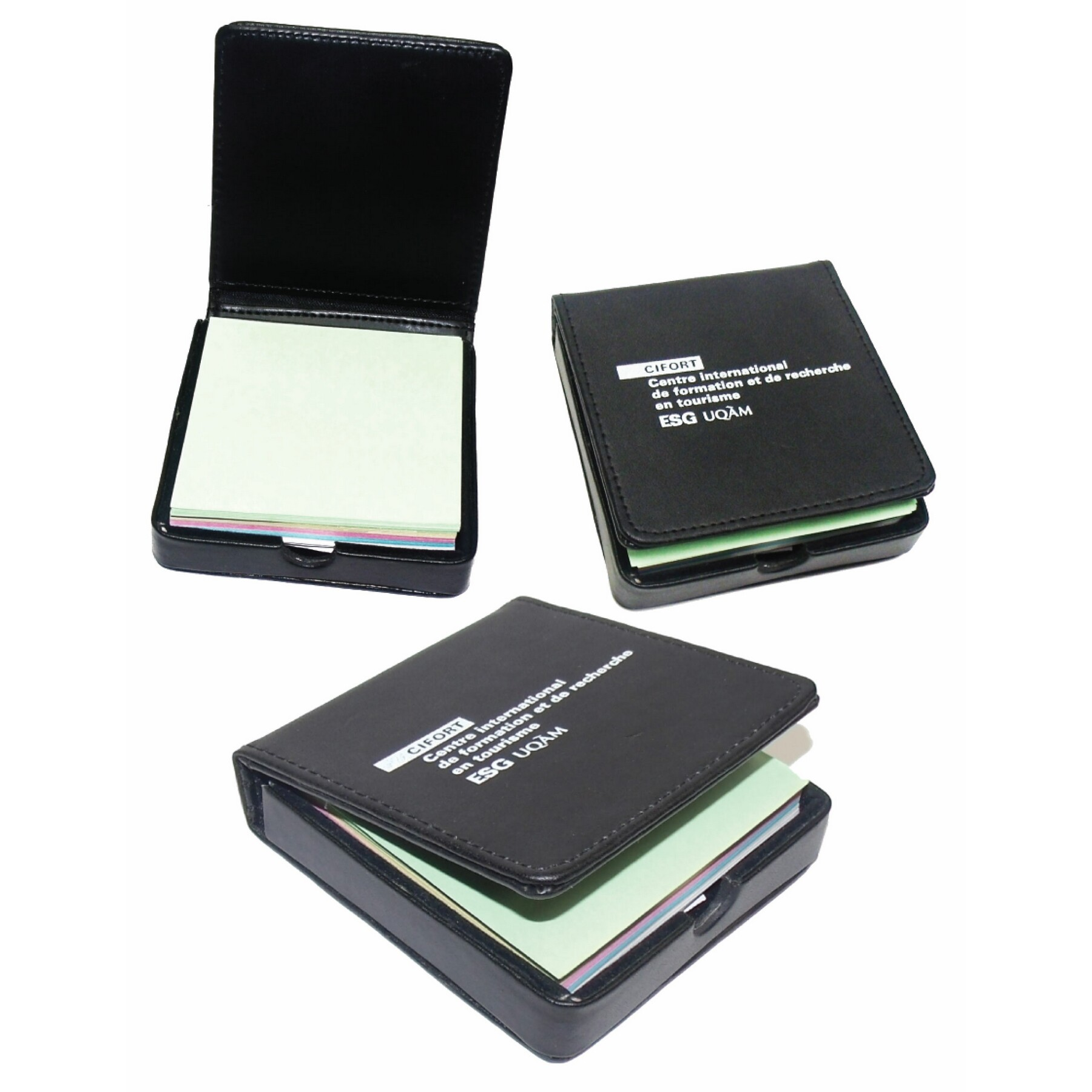 Desk Top Note Pad. 200 Sheets (80G paper). Made from Koskin-simulated leather. Black in color. Measuring 3.25" W x 3.5" H. Our company offers a professional and reliable service for the provision of all your business gifts and promotional products, from artwork generation through to sourcing, production and distribution. 3.25" W x 3.5" H