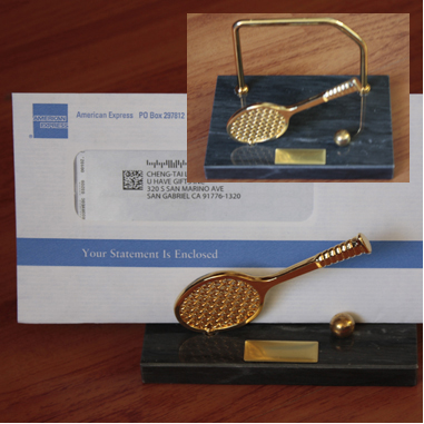 Tennis Letter Holder with Black Marble Base. 5" W x 3 1/2" H x 3 1/4" D