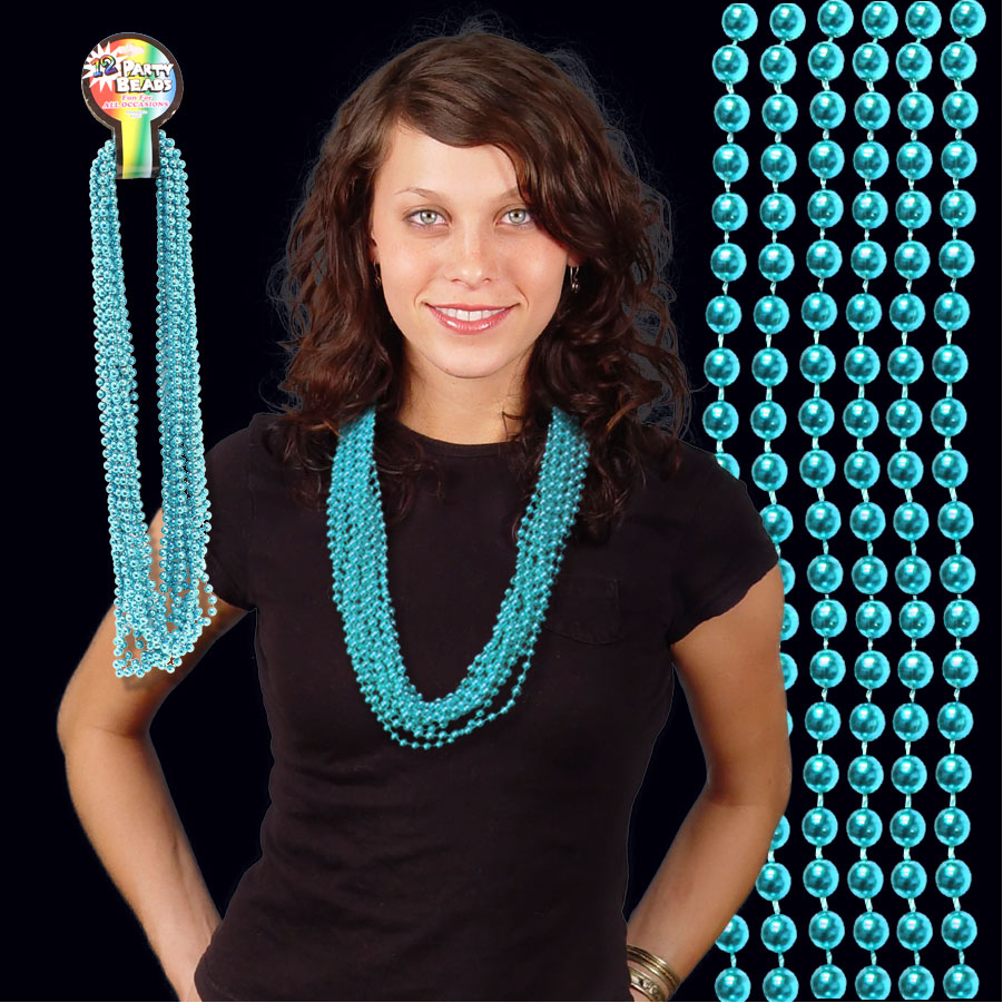 Our teal beads are perfect for any party theme or teal, aqua or turquoise color scheme! WARNING: CHOKING HAZARD - Small parts. Not for children under 3 yrs. Complies with CE, CPSIA, C-TPAT. 33" L