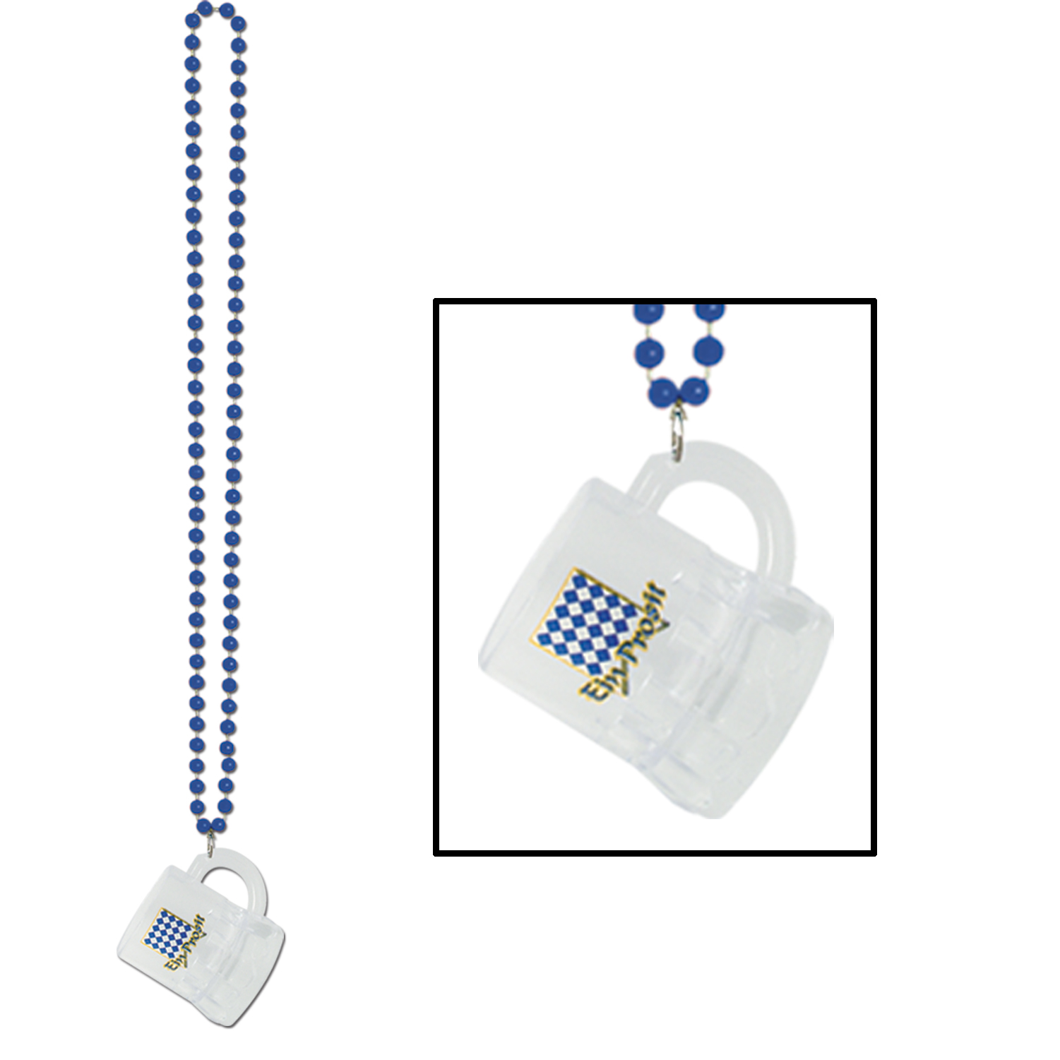 Blue Bead Necklace w/ Oktoberfest Mug. 33" L
