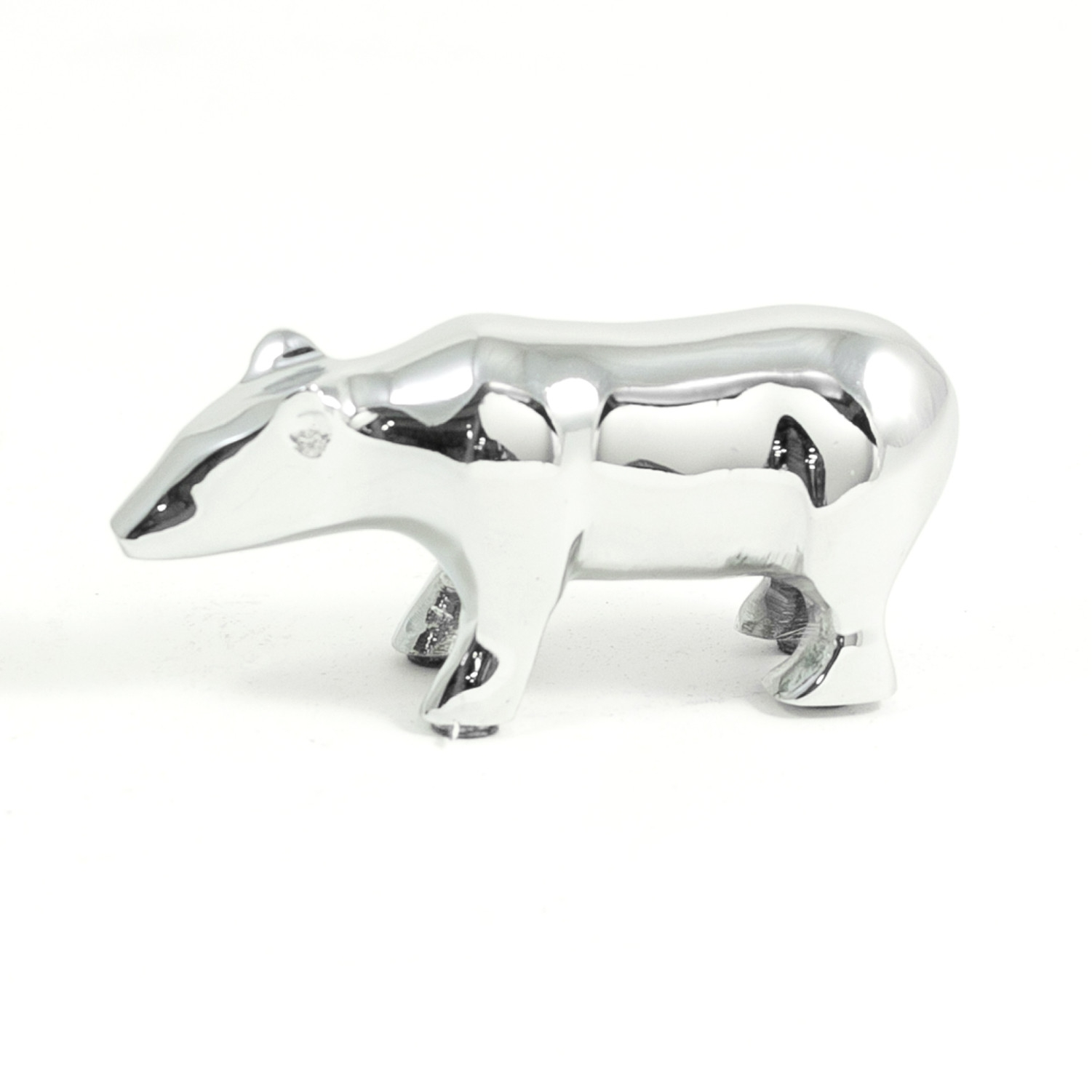 Keep your organization's name and logo at the top of the stack the easy way with these chrome plated bear paperweights. Each 4'' x 2'' x 1.25'' paperweight features a tarnish proof exterior and optional personalized laser engraved imprinting for an effective and visible way to put your brand on display. Whether it's an employee milestone gift or an executive recognition, these bears are a great way to spruce up any desktop!. 5" L x 2" W x 1.25" H