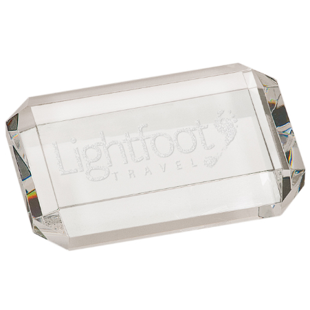 Optical crystal award, deep sand etched and gift boxed. Item is hand made so sizes may vary slightly. 5" H x 3" H