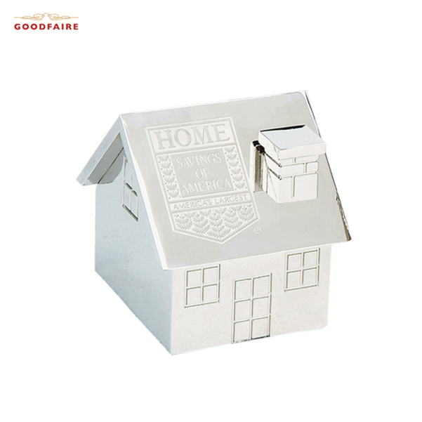 Metal house-shaped paper weight. 2" W x 1.9" H x 2.18" D