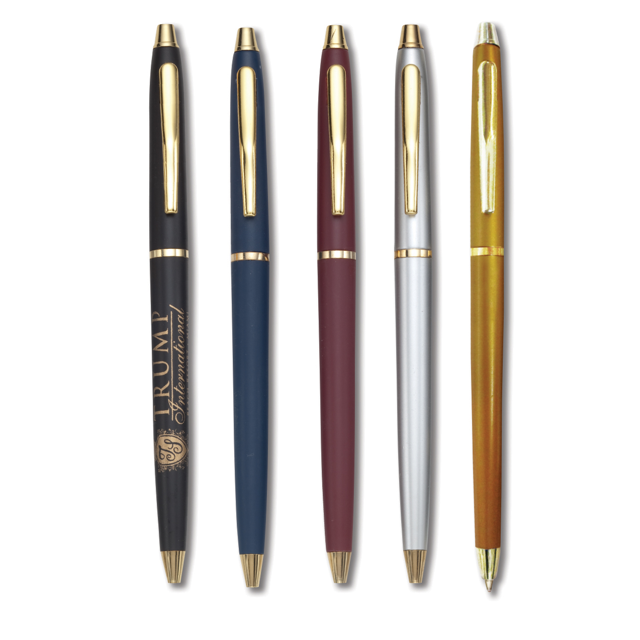 Launch an offensive move to gain new customers with the help of the Lodger Ballpoint Pen! The medium point black ink twist action pen features gold accents. Pens are excellent promotional tools for all industries because they are portable and functional. The Lodger pen is ideal for businesses that do a lot of paperwork, including car dealers, financial institutions and hotels. Customize yours with a silkscreen imprint or personalization today! Free rush service available!
