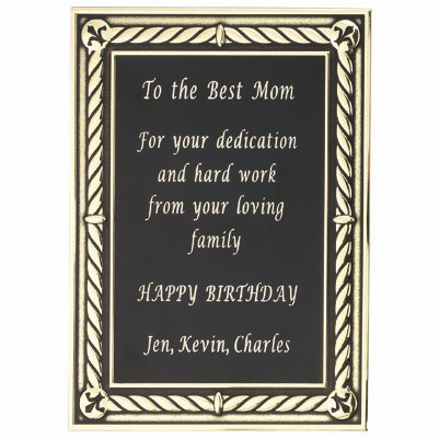 Black screened aluminum plate with Florentine edges. 5" L x 7" W