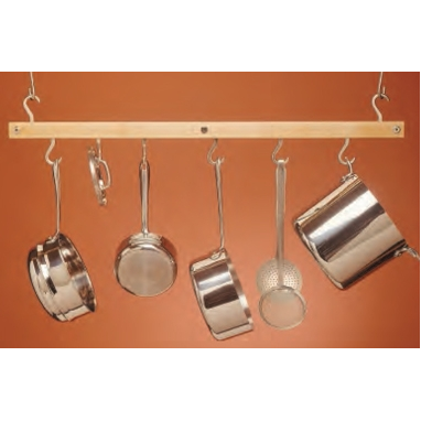 This space-saving rack is ideal for small kitchens or apartments. The set includes six pot hooks and installation hardware (imported) that suspends the rack at a convenient height from a standard eight-foot ceiling. Must be suspended from solid wood. 36" L x 12" W