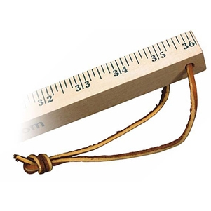 Two panels - same scales, 2 panels - same straight line ad copy. Leather strap is attached. Scale: English on two panels. Complies with Prop 65. 3/4" W x 3/4" H x 36" L