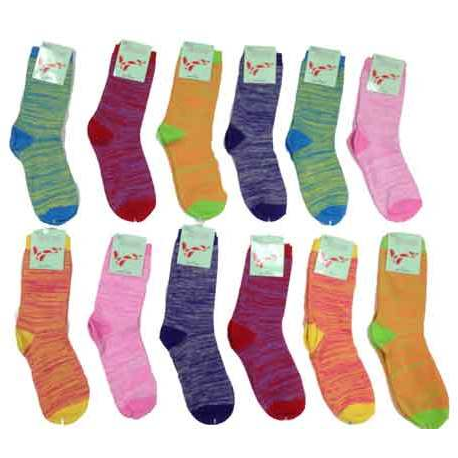 Wholesale Women's Computer Socks come in size 9-11 (fits shoe sizes 4-10.5). These socks come in different lined colors and patterns, and are individually tagged with 3 pair per band. 80% polyester, 10% nylon, 10% spandex. One unit equals one pair.