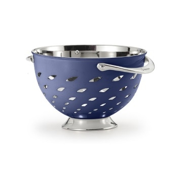 This compact version of Savora's larger, award-winning design effectively drains food or can serve as a fruit bowl. The cast metal handles are designed for strength and optimal comfort. Drainage holes provide easy straining and features a pedestal base to elevate the colander. Constructed of stainless steel. Hand wash with gentle soap recommended. 4 1/2" H x 6 1/2" Diameter