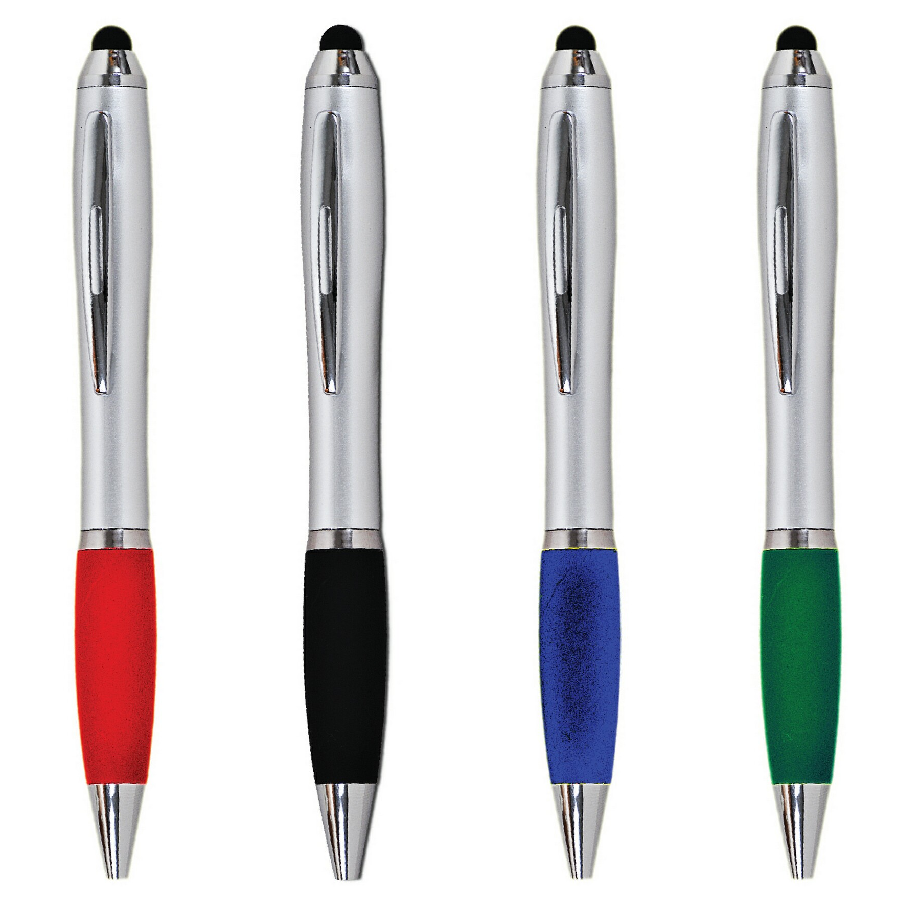 50082?49826 Twist action plastic stylus pen with brightly colored grip and silver coated barrel 50082?49826 Fully compatible with all capacitive touch screens