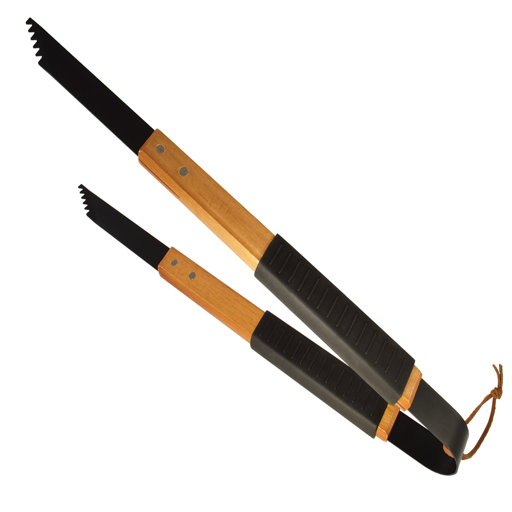 This wood BBQ tong is the match to our MI6090. These tongs are sturdy and long which means you keep away from the flames! Sure-Grip ends means just that! Never drop food again! Customize this promotional tool with an imprint of your company name and logo for maximum brand visibility. Measuring 18 3/4" L x 1 1/4" W, this imported product comes zip-tied with a protective cardboard sleeve. 18 3/4" L x 1 1/4" W