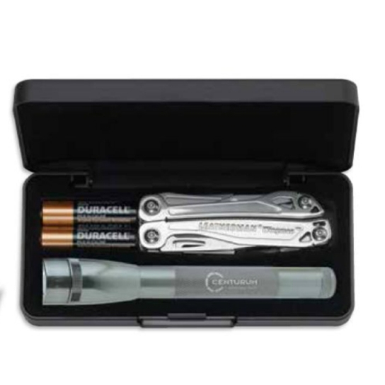 Super powerful 6 1/2" LED mini Maglite49838 in your choice of color. Full size Leatherman49838 tool is 4" long when closed. Package includes 2 "AA" batteries, gift box & made &/ or assembled in USA. The Leatherman49838 rebar has pliers that have been optimized for strength & feature replaceable wire/ hard-wire cutters. The rebar is sure to be an instant hit on job sites, as well as home projects the world over. Features needle nose & regular pliers, electrical crimper, 420HC knife, & 420HC serrated knife. 4" L