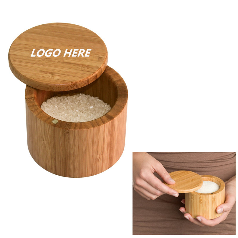 Round salt box for storing dry goods. Constructed of high quality bamboo, ecologically green alternative to wood, strong, dense and versatile. Perfect for all dry items. 3 1/8" L x 2 3/4" W