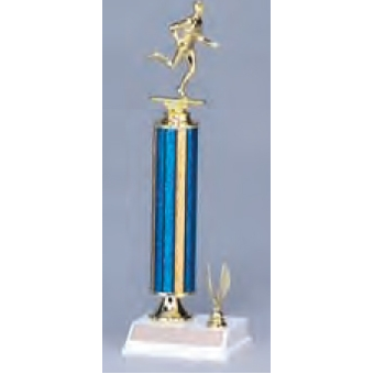 Spectrum Series - Blue holographic trophy columns - Prices include our standard #6 size figure casting. Trophy heights are computed using average figure heights. Please see Page 116 for complete metal figure listing. Trophies are shipped wrapped in cardboard for maximum protection. Trophy figure and engraving plate will be shipped unattached. 13" H