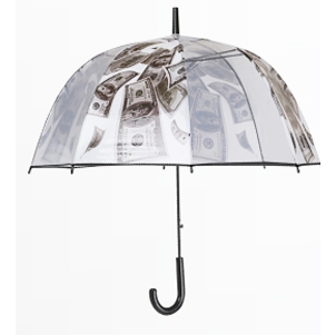 This 46" arc, clear canopy umbrella features an attractive black trim and auto stick open for ease of use. The clever, Apollo shaped clear canopy is not only stylish but sturdy in the wind. Imprint one color on the panel domestically, or take advantage of our full color overseas production. Call factory for full color imprint.