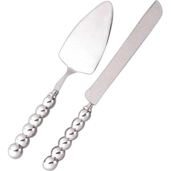 Elegance, Cirque Collection, Cake Slicer, Server Set, Non Tarnish, Bronze Plated, Stainless Steel, Tabletop, Beaded Handle, Triangular Server Blade, 2 Piece Set