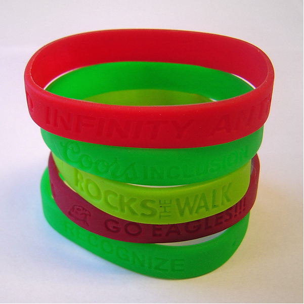 Our debossed bracelets are stamped deep into the silicone to give a bold impression that is easy to read. The bracelets are available in any color and the debossing includes your text and/ or your logo. Adult and youth bracelet sizes available. Durable process that can be worn day in and day out without any wear and tear. Custom made to your desired design. Custom bracelet artwork service. 8" Diameter