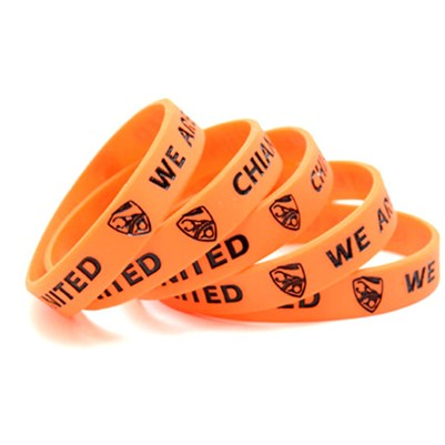 FREE shipping and FREE set up on our Debossed Color Filled wristband. Serve up a unique promotional product like the debossed Color Filled Wristband during your next event! The ink injected silicone wristband is very popular and people love the fact that they can fill their message with color. Available in adult and youth sizes with any PMS color for you to choose from to better match your brand. Sizes: Adult- 8" circumference, Youth- 7" Circumference and Toddler - 6" circumference. 8" L x 0.50" W
