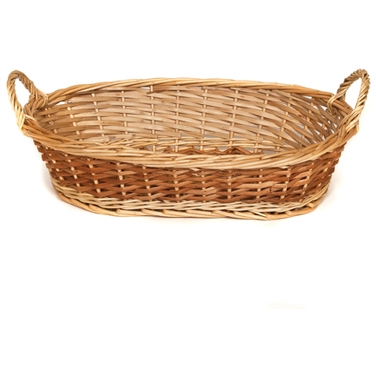 Oval, Wicker, Woven, 2 Handle, Side Handle, Tapered, 12"x6 1/2" Base. 16" L x 9 1/4" W x 3 1/4" H