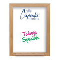 Unique floor wet-erase sandwich board with well built oak frame available in 5 standard finishes. Collapses flat with the hinged top for easy handling & storage. Perfect for sidewalk advertising of daily specials to bring in customers! Custom imprinting available - Call today!. 24" L x 36" L
