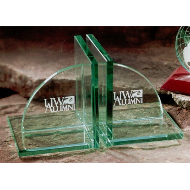Our glass book ends are an affordable way to recognize achievement and commitment to excellence. Each piece is hand-finished and carefully sand blast etched to ensure absolute perfection. Both pieces of the set may be decorated at no extra charge. 6" W x 6" H