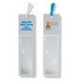 Magnifier with a 4 inch ruler. Fresnel lens with 5X magnification. Wafer thin. Flexible and unbreakable. Four attractive colors. Each item is inserted in a cello bag. 5 1/4" W x 1 3/4" H