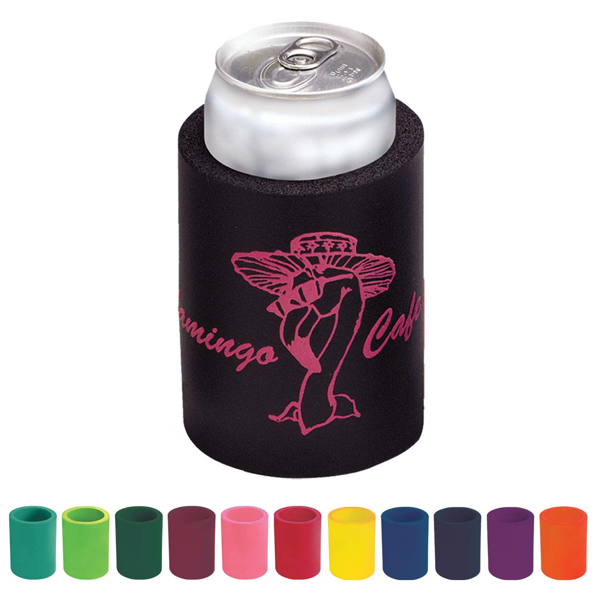 Keeps beverages colder or warmer longer. Large imprint area with wall thickness of 3/8". 12 Colors to choose from. Made of polyurethane foam with a no slip grip. 4" H