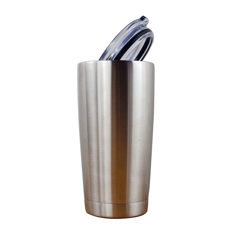20oz Stainless steel vacuum tumbler Double wall s/s vacuum structure Keep warm and cold for 12hrs With transparent normal lid/ Slide lid (AS) Stainless steel finish. 17.5cm L x 9cm W x 7cm H