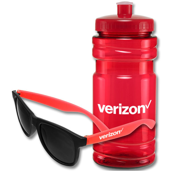 New! Surf 'n Sun Sport Set with 20 Oz. Surf Bottle and CPS Shades. Theses bottles are molded in the USA using imported materials. Bottles are BPA free and FDA approved. Includes a one color two sided imprint on the bottles and one imprint color/one side on the sun glasses. CPS Shades are made in China and provide 100% UVA Protection. Complies with CPSIA.