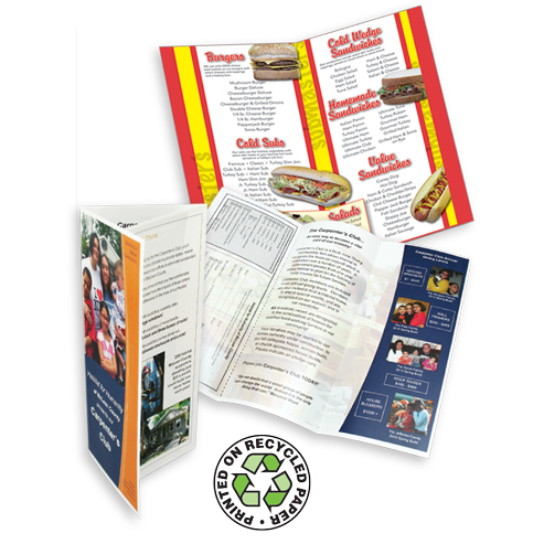 Brochure measures flat 8 1/2" x 11" half-folds to 5.5" x 8.5" brochure easily fits in rack and literature holders. Products are printed with low VOC inks that contain a minimum 45% renewable resource content (vegetable oil). 8.5" W x 11" H