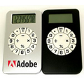 Black document bag with solar calculator. 8 7/8" H x 4 3/8" W x 1/4" D