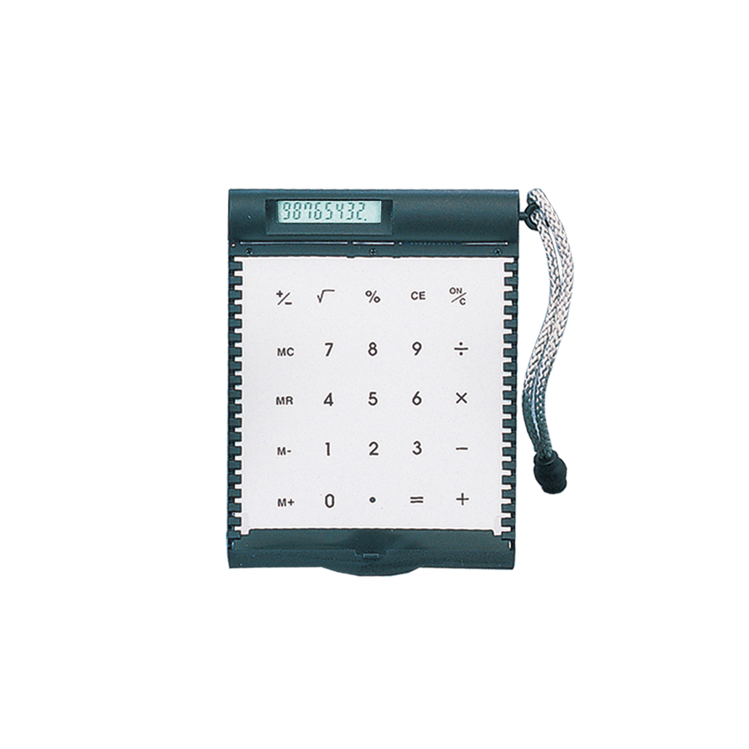 Just when you think you have seen it all! this black & white roll-up flexible battery powered calculator is light-weight, fun and practical. Roll up and snap shut to fit in your pocket. Made of plastic with an automatic shut off. Barrel can be customized. 4" L x 5" W