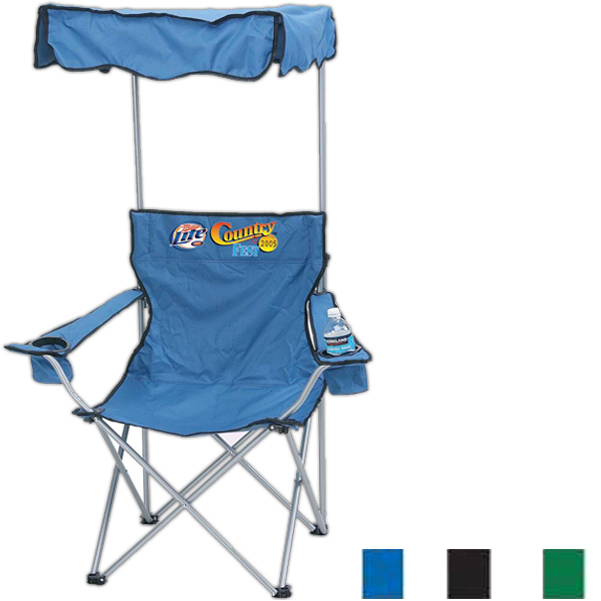 Camping / Folding Chair w/Canopy is made of 600 denier polyester, 16Mm steel frame. Durable, 250 Lb. capacity & dual cup holders. Extendible canopy & includes carry case with drawstring closure. 33"x21.5"(Seat)x17"(Seat). 33" H x 21.5" W x 17" D