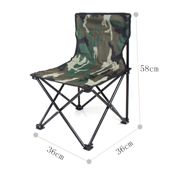 This chair is made of 600D nylon. Carrying bag is made of 210D nylon with shoulder strap and drawstring. Steel tubular frame and weight limit 250 lbs. 14" L x 14" W x 22 3/4" H