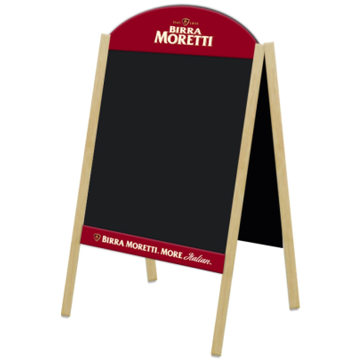 High quality A-Frame wooden chalkboard for displaying specials and announcements for guests and customers. Perfect for your front sidewalk or inside as a creative display option. Includes one color imprint on one location. 35" H x 20" W x 2" D