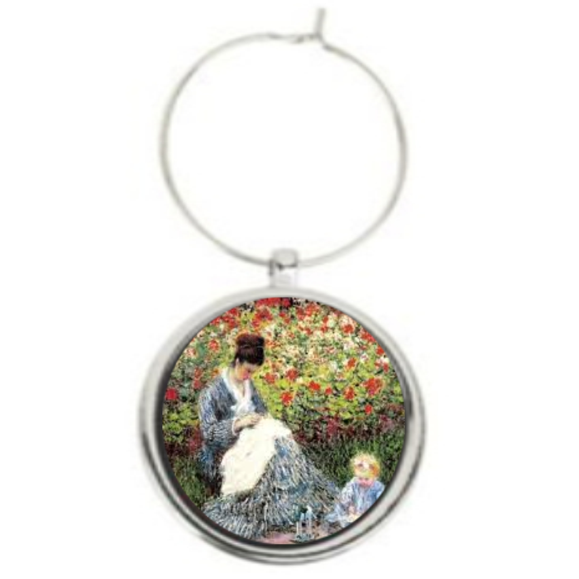 This elegant Silver Plated wine glass charm measures 2.25" tall (including ring) and has a 1" domed imprint on 1 side. Can be one color or many. A great way to promote your business, or add a personalization to any event!. 2.25" L