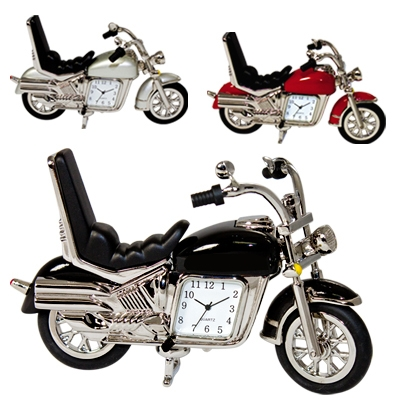 Motorcycle clock. Made of die cast metal housing. Accurate analog quartz movement. A great gift to motorbike enthusiasts. 5" W x 3" H x 3/4" D