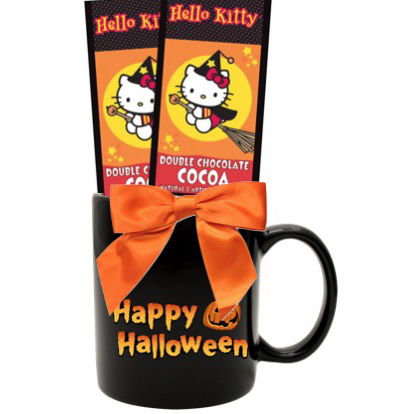 Halloween Hello Kitty Cocoa Packs packed inside keepsake mug. Perfect for Halloween gift giving. Simply mix with hot water for a creamy, color changing Belgian White chocolate drink. Mug is wrapped in clear cello bag and tied with a bow for a gift presentation and easy distribution at your event. We'll customize a Halloween mug to fit your budget and event needs. Complies with FDA. 4.5" W x 3.75" H