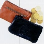 A handy soft leather purse with separate zip pockets for coins and tokens. Key ring in the pocket. Made in the USA. 2 1/2" W x 4 1/4" L