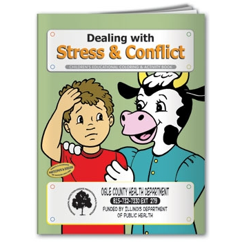 Free 2nd Color Imprint! Carolyn the cow helps kids understand that stress affects everyone. She teaches us that stress is normal, but we can learn to handle it and not get "stressed out". 16 page coloring book and action book. Features great story lines. Ready to teach fun & valuable lessons. A coloring book and activity book in one! Includes word scramble, word search, jokes and a signature page. Comes with crayon pack (4 pack of crayons). Crayons are red, yellow, green and blue. 8" W x 10 1/2" L