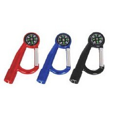 Carabineer with LED Light and compass, Carabineer with compass Made of aluminum your logo is acceptable. 3.55" L x 1.64" W x 0.55" H