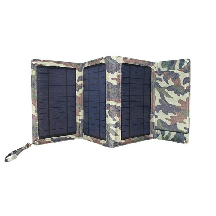 This power bank is super power with the solar power, even recharge more quickly than input electrical power. The solar recharge power is up to 9 W. It is 5,000 mah capacity. It is made of Li-ion batteries, and the cover is waterproof nylon. Input 5V/1A, output 5V/1A. Repeated use of more than 500 times. It provides the power for your phone, laptop, or other equipment. 9 7/16" L x 6 11/16" W x 1 3/16" H
