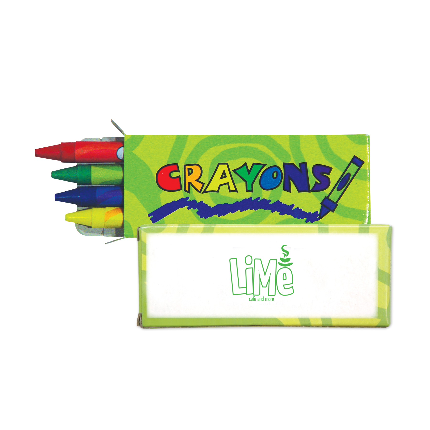 Add more color to your promotional campaign with these classic products! Our best-selling 4 pack of wax crayons includes a red, green, blue and yellow crayon stick. Crayons encourage children to be creative and these are no exception. Non-toxic, so parents and teachers can rest easy. This child friendly promotional item would be great for after school programs and more. Fun for kids of all ages. Ideal for restaurants, day cares and hospitals. Complies with ASTM. 3 3/4" W x 1 1/2" H