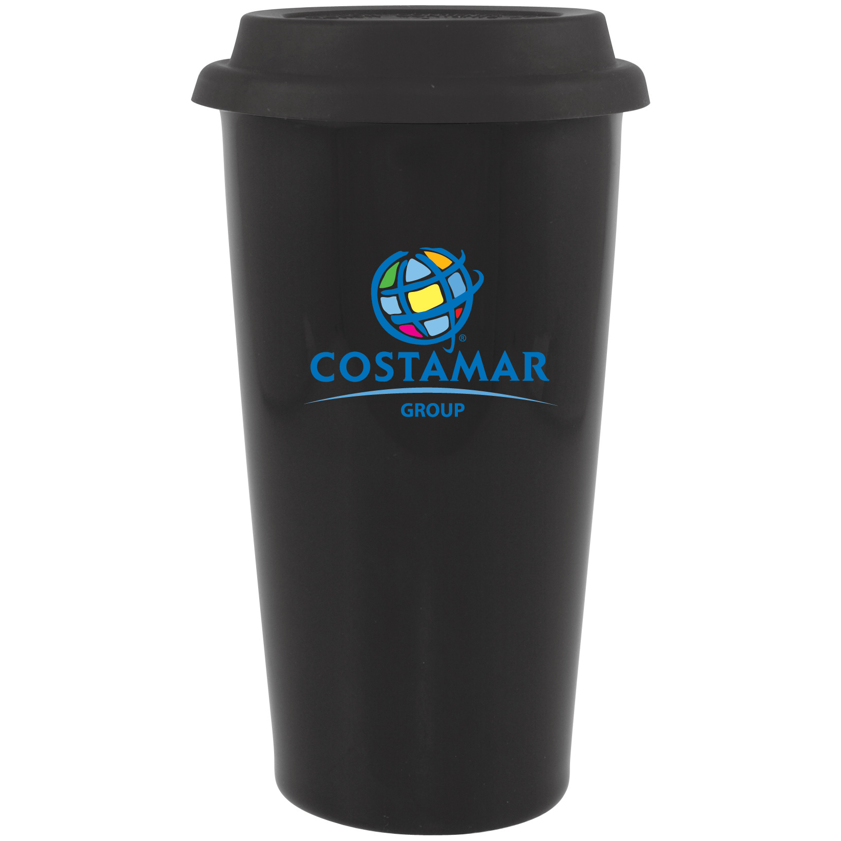 Silicone lid: Helps keep your beverage hot or cold. Helps prevent spills while at work, at home, or on the go! Double wall porcelain: Traps air for insulation, Hot or cold beverage. Silicone stopper: Prevents water from entering the hollow cavity when washing.; Hand wash recommended Microwave safe with non-metalic imprint. Complies with FDA, Prop 65.