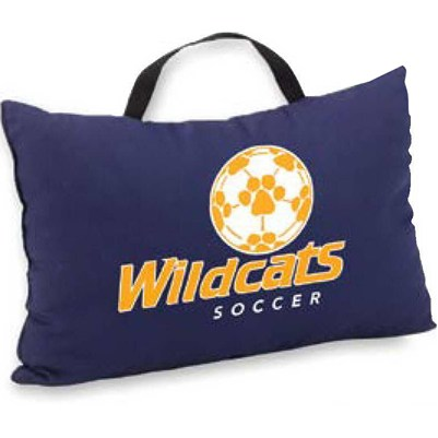 This traditional pillow stadium cushion is super comfy and super convenient! It is approx. 5" thick, comes with a handle and fabric on the front & nylon on the back. It is made from waterproof 600 Denier Polyester with PVC backing and filled with our New InsulSoft(TM) shredded synthetic foam for a soft and comfortable cushion. Made in the USA! Dimensions: 15" x 10"W. Choose from 9 sensational fabric colors. Also available with fabric on both sides. Complies with FLA. 15" L x 10" W x 5" Thick