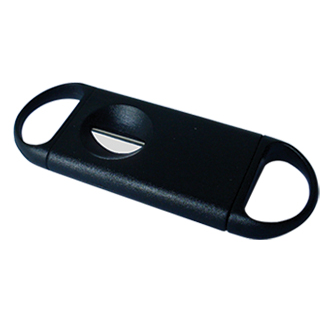 V-Cutter: V-Cut black cigar cutter. Stainless steel blade. Extended Body with plenty of room for engraving or pad printing.
