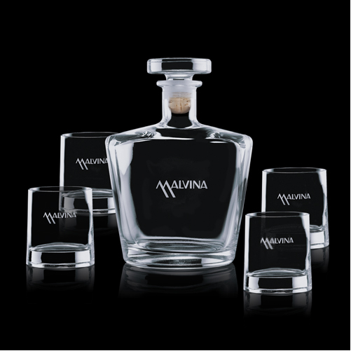 Lead Free Crystalline. Stunning Decanter with a very unique shape. Available in sets.