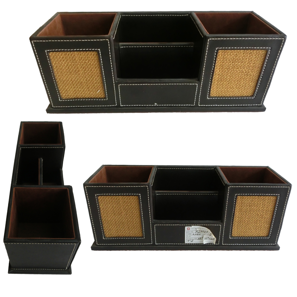 High quality PU Desk Organizer. Screen print imprint included in the price. Shape, color, imprint and packaging are open for customization. Complies with CPSIA. 29.2cm L x 10.2cm W x 10.9cm H